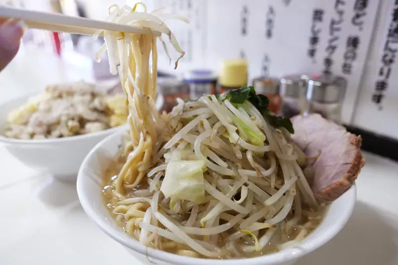 写真は中盛りで麺は250gでかなりの量があります。ニンニク、背脂は注文時に調整できます。(下の写真はニンニク、背脂ともに普通)