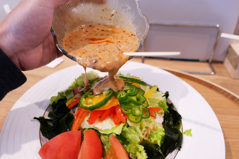 運ばれてきたとき中は生なので、店員さんが焼いてくれます。