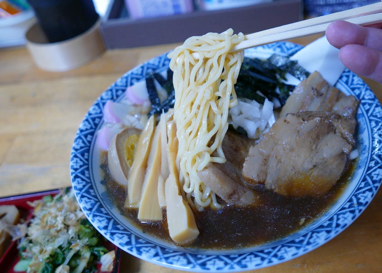 スープの色は濃いのですが、醤油が際立った感じではありません。具の味が溶け出した優しい味です。
