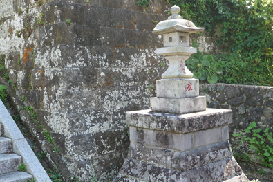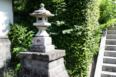 石段手前の一対の常夜灯。年代は彫られていますが風化して読み取れません。