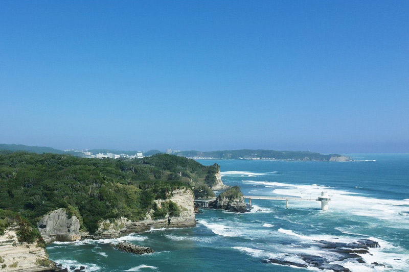 鵜原海岸はJR外房線「鵜原駅」徒歩約7分。車は無料駐車場に停められます。