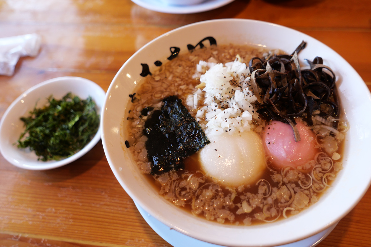2025年12月26日館山市北条。話題の昆布水ラーメンの他、1日限定10食の牡蠣ラーメン、醤油、塩。替え玉、和え玉あり。
