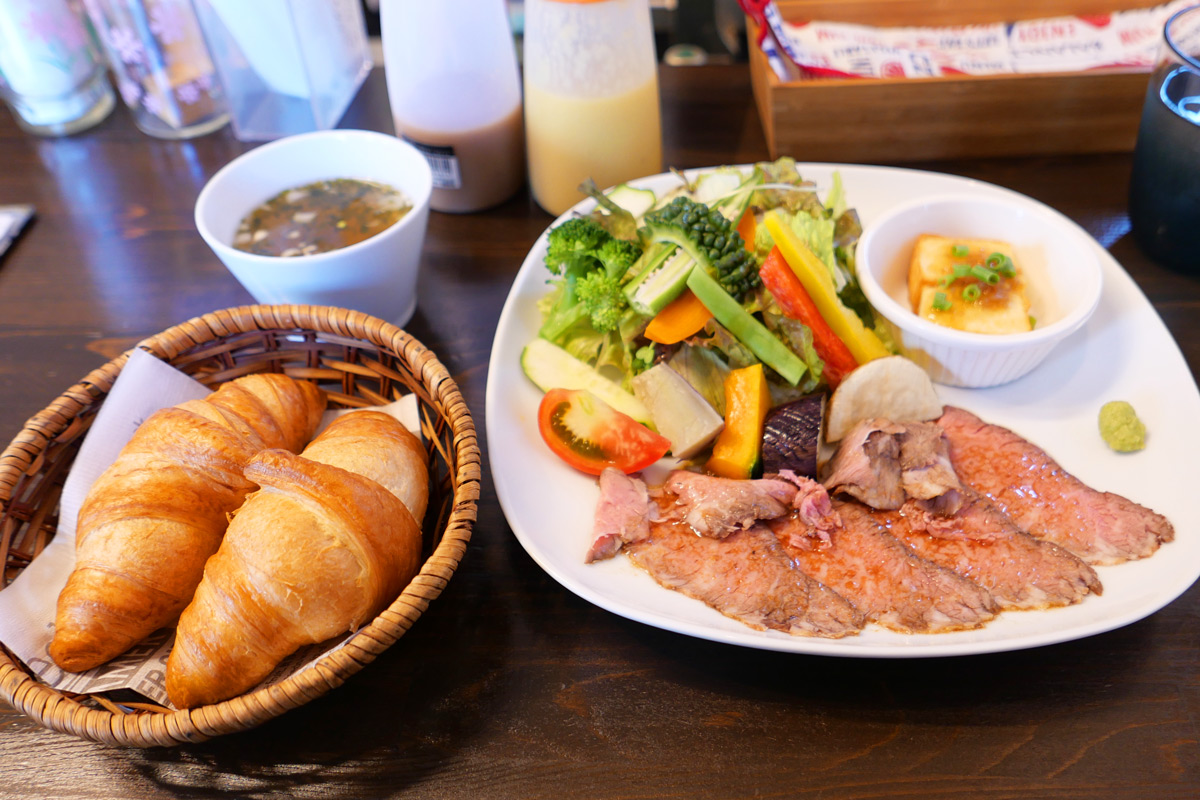 2025年10月4日木更津市高柳。超高コスパで評判のカフェバー&レストラン。焼きたてクロワッサン、ローストビーフ、ハンバーグの他、うなぎも人気。